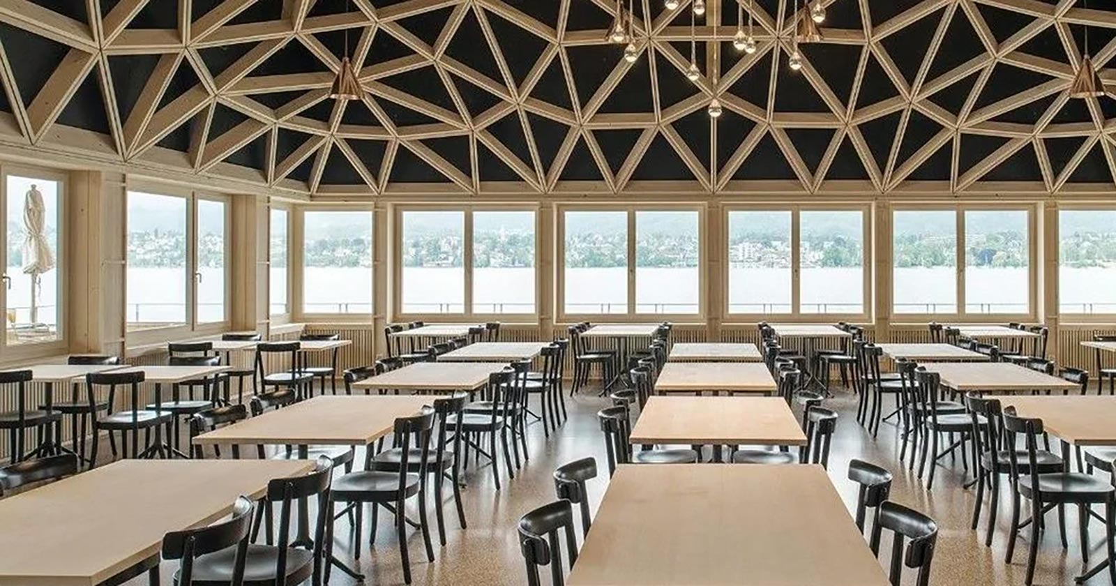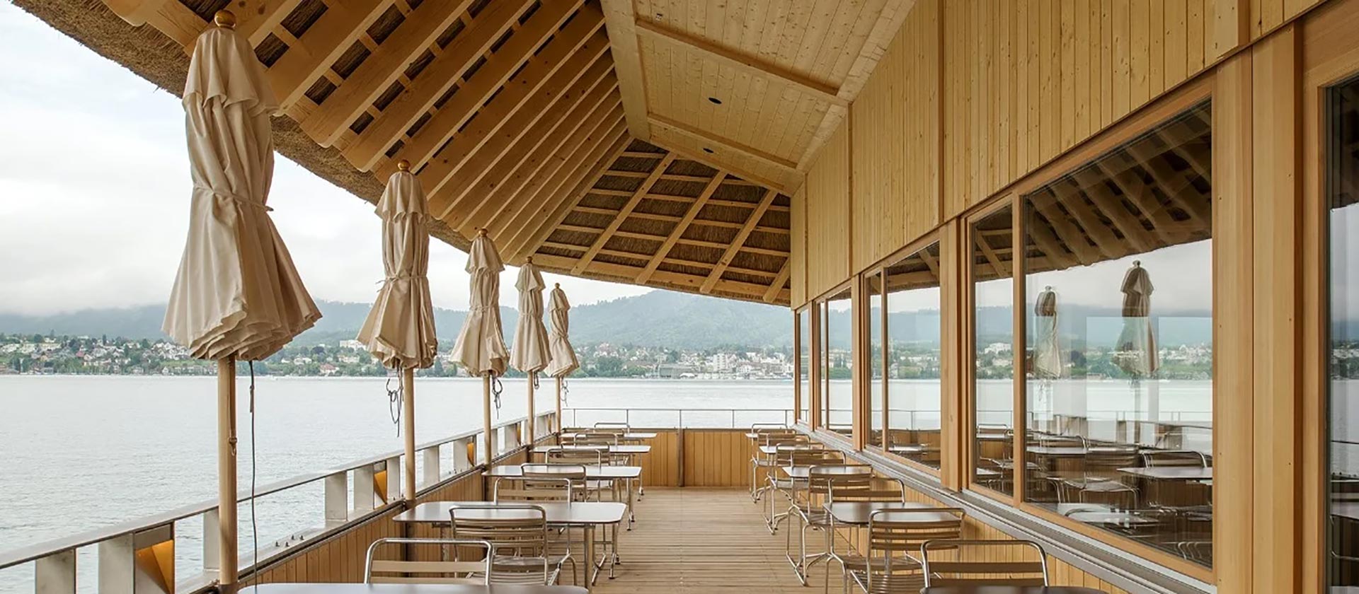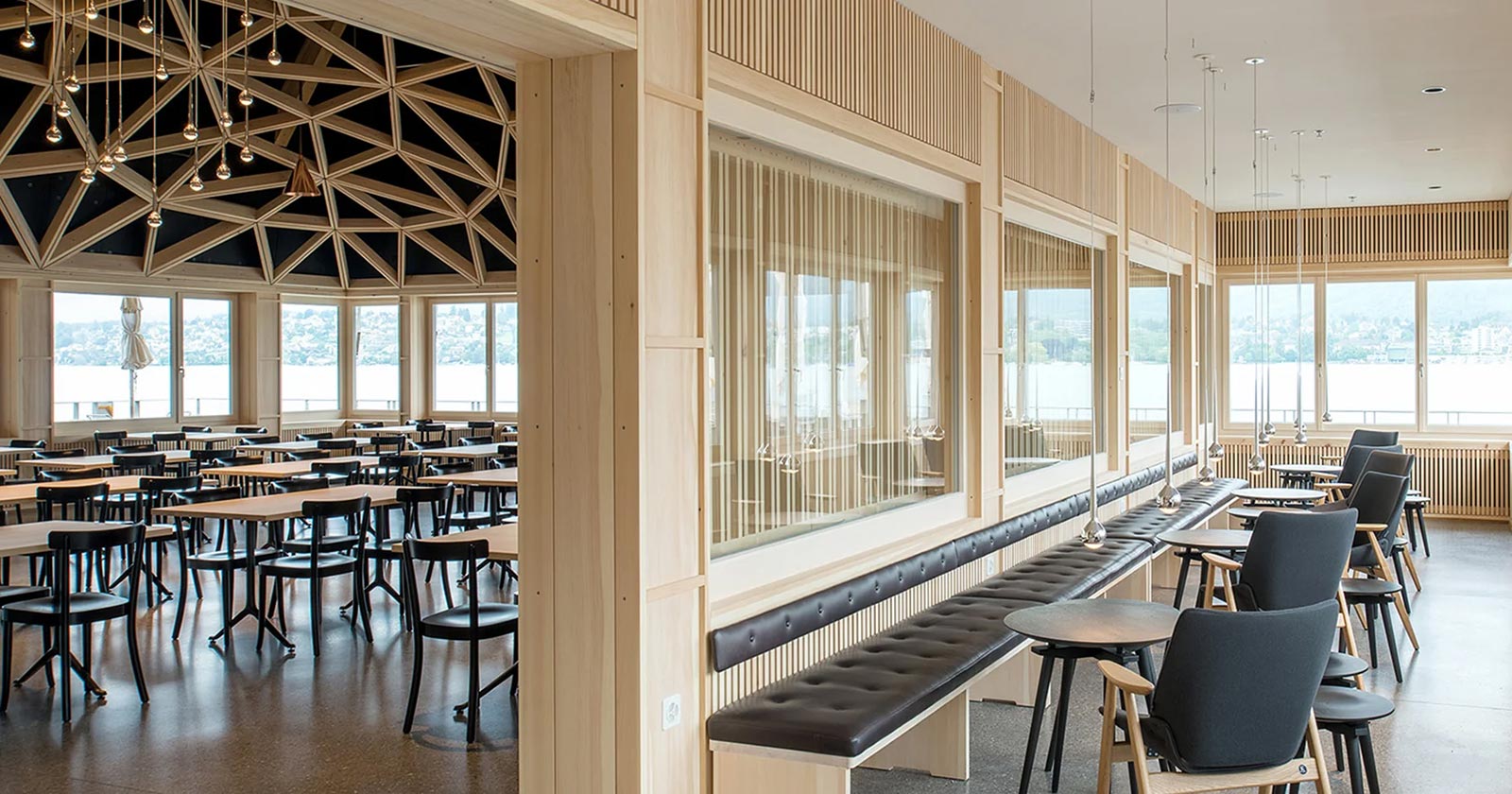 Die neue Fischerstube wird ganzjährig geöffnet sein. Ihr hallenartiger, hoher Gastraum öffnet sich mit grossen Glasfenstern zum See. Die grosse Terrasse auf der nordwestlichen Seite der Fischerstube ermöglicht den Blick über den See in die Berge und gegen die Stadt. Zusammen mit dem Seerestaurant wird auch das Gartenrestaurant auf der Landseite und seine bestehende Selbstbedienung neu gestaltet.