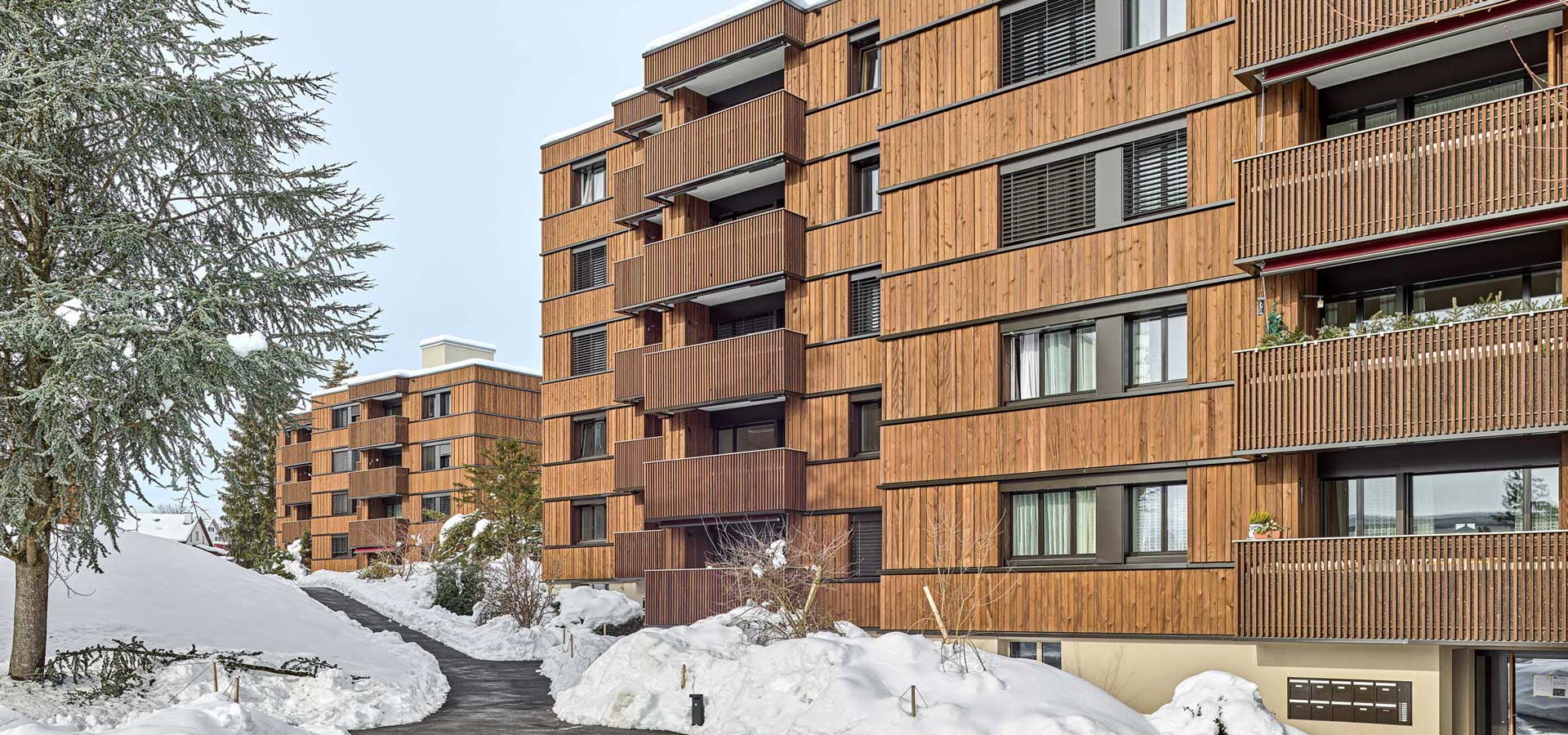 Dieses Projekt umfasst die Sanierung von fünf Gebäuden aus dem Jahr 1972 mit aktuell 88 Wohnungen.
