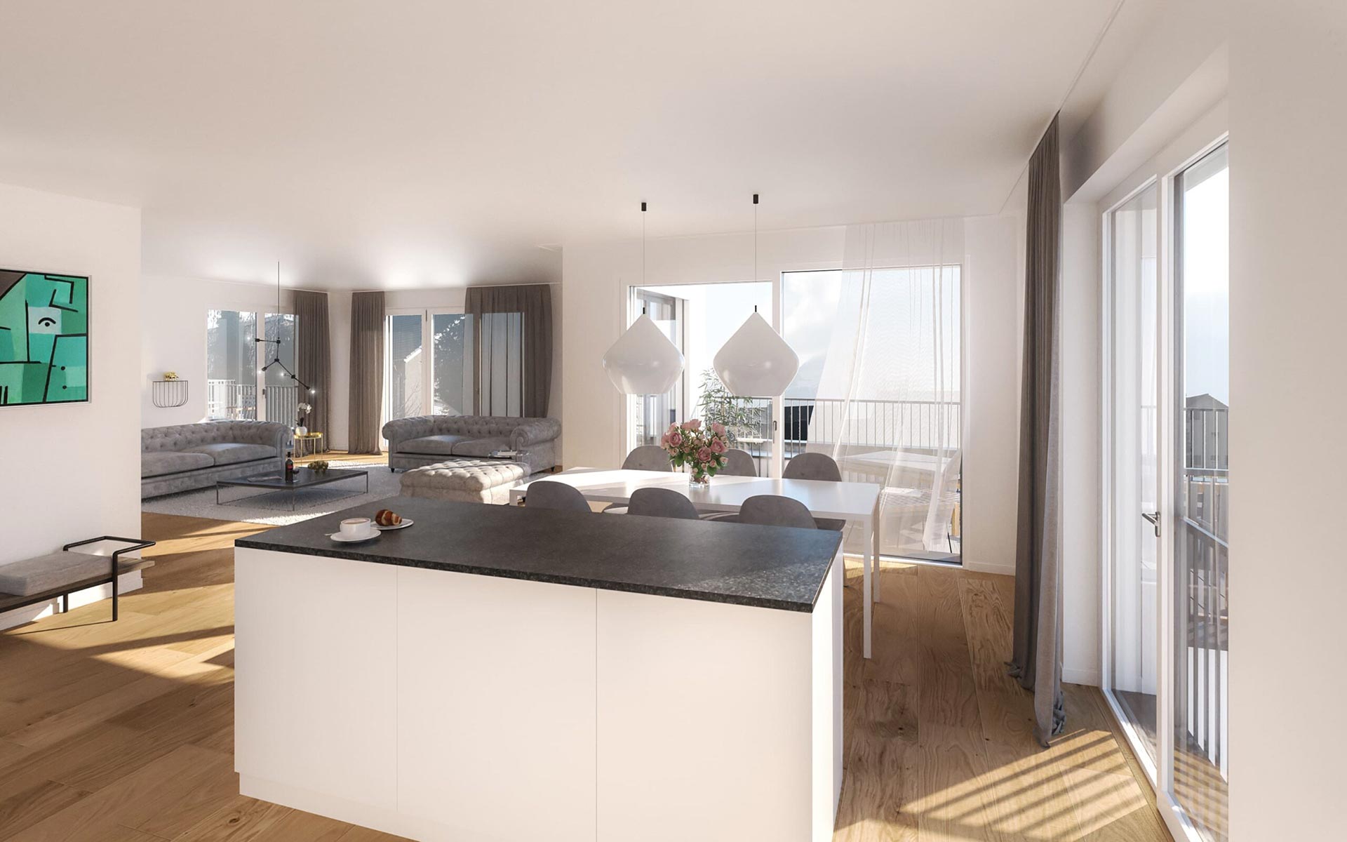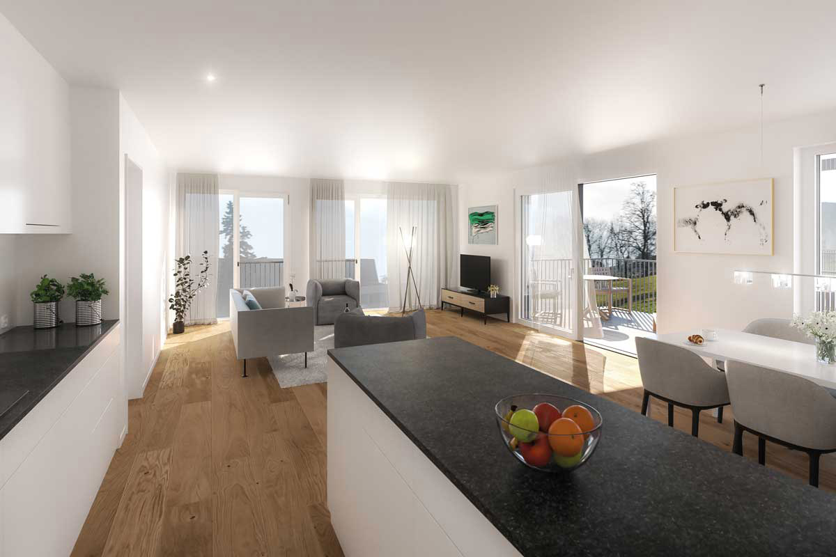Dieses Projekt umfasst zwei moderne Wohngebäude mit 14 hochwertigen Eigentumswohnungen. Die beiden Objekte befinden sich im Zentrum von Tuggen und geniessen daher eine exzellente Anbindung an Einkaufsmöglichkeiten, Naherholung, Infrastruktur und Schulen. Die Wohnungen bestechen mit einer einzigartigen Aussicht und sind hell und lichtdurchflutet. Eine unterirdische Einstellhalle verbindet die beiden Gebäude und ermöglicht einen direkten Zugang zu allen Häusern.