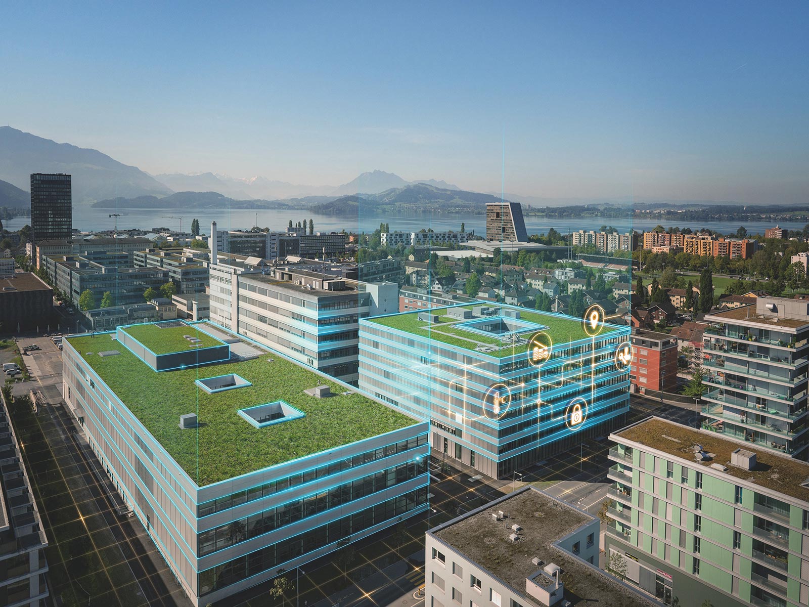 Der neue Siemens Campus in Zug beheimatet die Entwicklung der Smart Infrastructure. Diese Technologie wurde in allen neuen Gebäuden auf dem Campus verbaut und kann diese so miteinander vernetzen und erleichtert somit die allgemeine Steuerung der Gebäudetechnik.