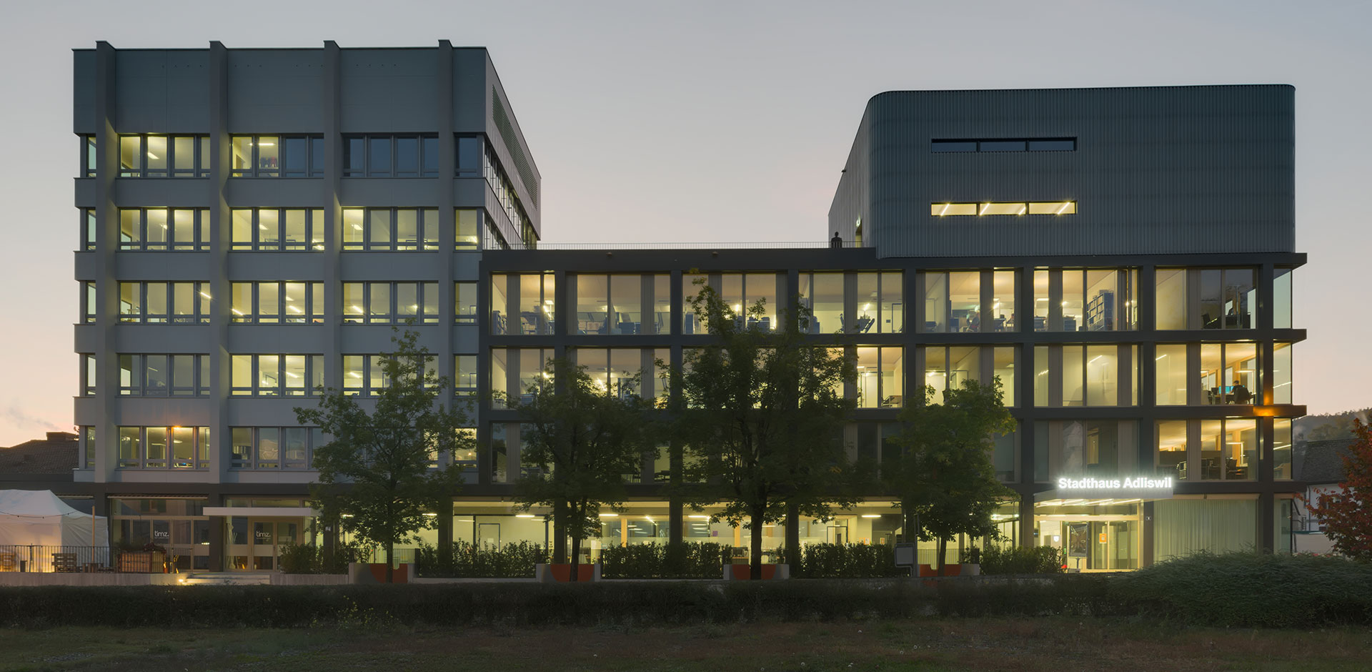Die Stadt Adliswil realisiert im Zentrum ein innovatives Dienstleistungszentrum, in welchem alle Dienstleistungen für Bürgerinnen und Bürger an einem zentralen Standort abgewickelt werden können. Die Konzentration von verschiedenen Abteilungen und Ressorts schafft dadurch in der Verwaltung der Stadt hohe Einsparungen und die Erzeugung von Synergieeffekten.