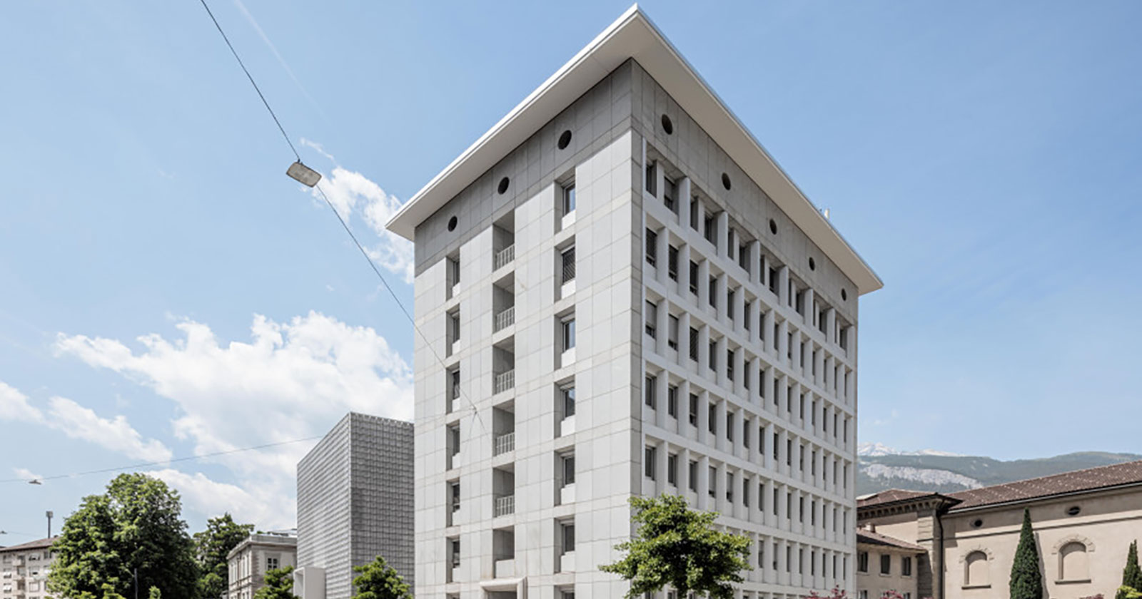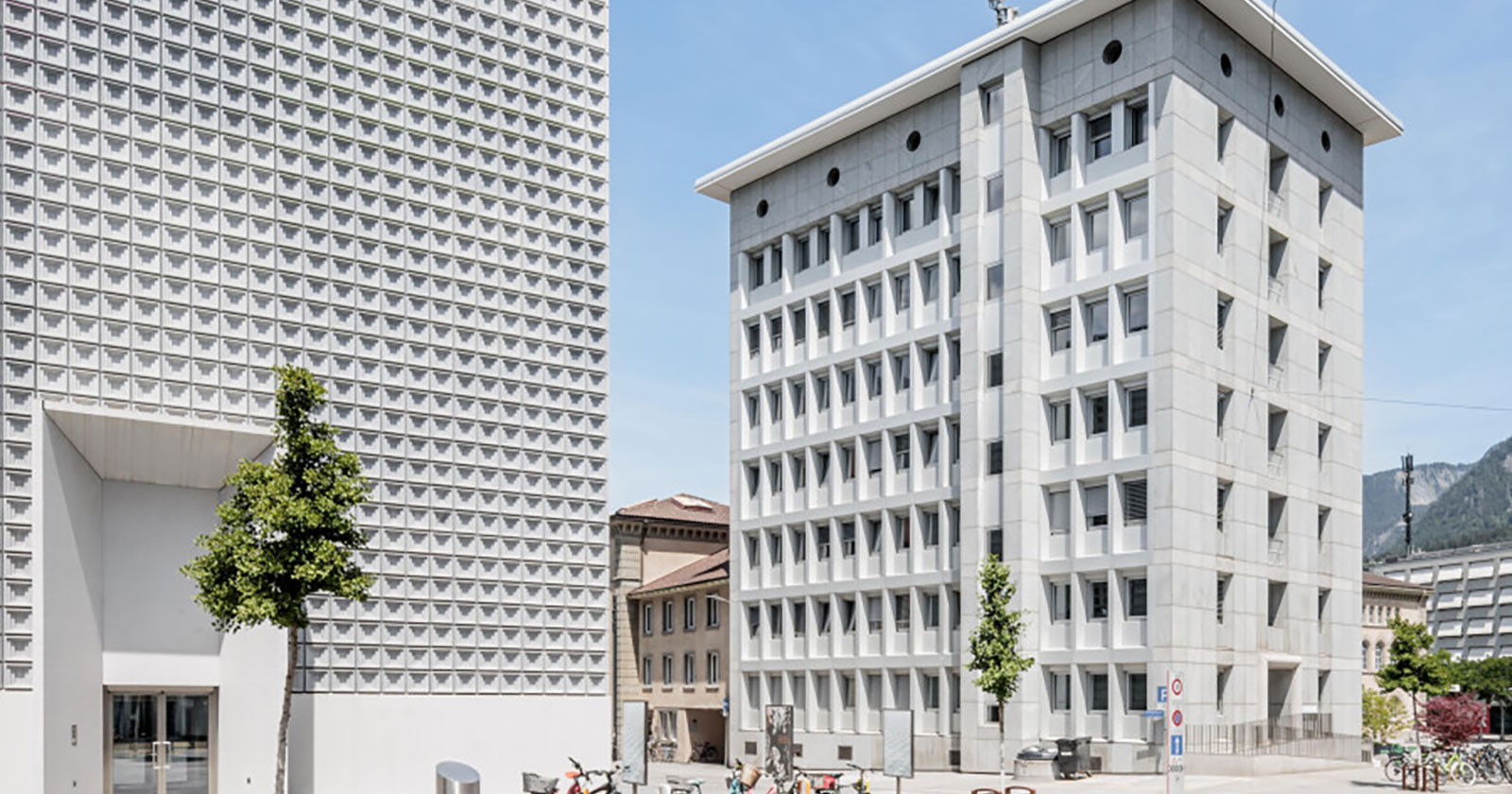 Das markante Verwaltungshochhaus mitten in Chur am Theaterplatz, wird komplett saniert. Zum einen wird eine allgemeine Instandsetzung durchgeführt mit inneren Umbauarbeiten. Zusätzlich wird die Statik angepasst und erweitert, um das Gebäude für potenzielle Erdbeben zu sichern.